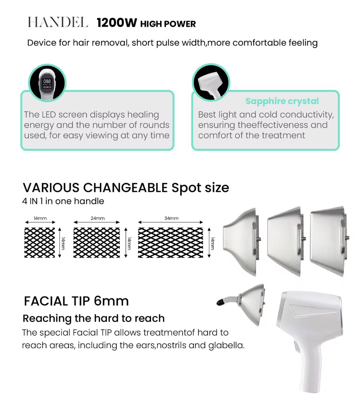 • Інноваційна технологія нагрівання фолікул: Глибоке прогрівання волосяного фолікула та навколишньої тканини до 45°C сприяє ефективному пошкодженню фолікула та запобігає повторному росту волосся.